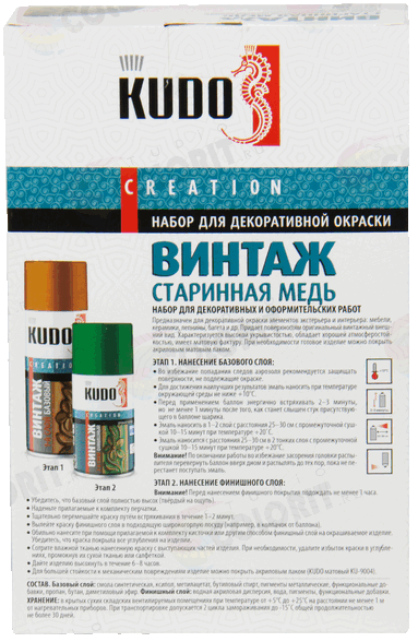 Хотите из обычной новой вещи сделать необычную старую? Набор «Старинная медь» от KUDO поможет с легкостью придать любой вещи благородный налет старины. Не надо ждать сотни лет — с помощью этого набора она появится на любой вещи буквально за час!
