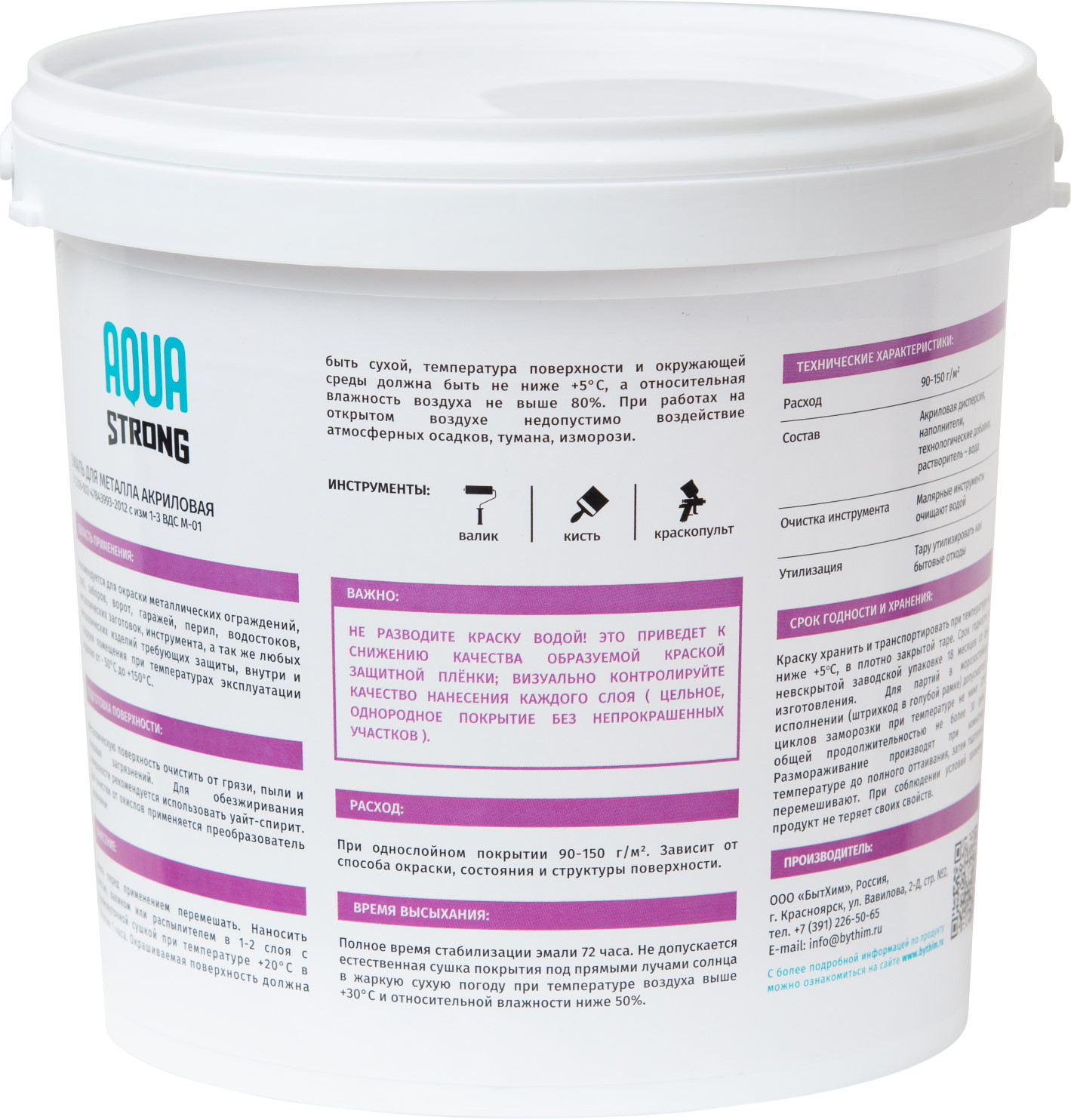 Бренд AQUASTRONG Страна производства Россия Тип краски На водной основе Предназначен для По металлу Уход Моющаяся Межслойная сушка (ч) 1 - 2 Время полного высыхания (ч) 48 Тип помещения Для всех типов помещений Блеск Матовый Назначение По металлу Расход г/м2 90 - 150 Тип упаковки Ведро Разбавитель Вода Внешний вид Гладкая Тип продукта Эмаль Эффект Гладкий Срок годности (в месяцах) 24 -