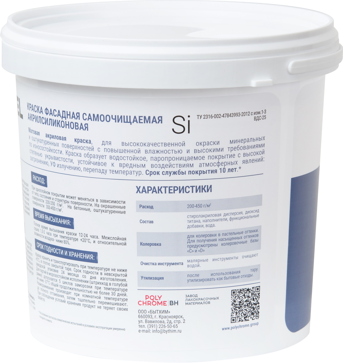 Матовая акриловая краска, для высококачественной окраски минеральных и оштукатуренных поверхностей с повышенной влажностью и высокими требованиями по износостойкости. Краска образует водостойкое, паропроницаемое покрытие с высокой степенью укрывистости, устойчивое к вредным воздействиям атмосферных явлений: загрязнению, УФ излучению, перепаду температур.