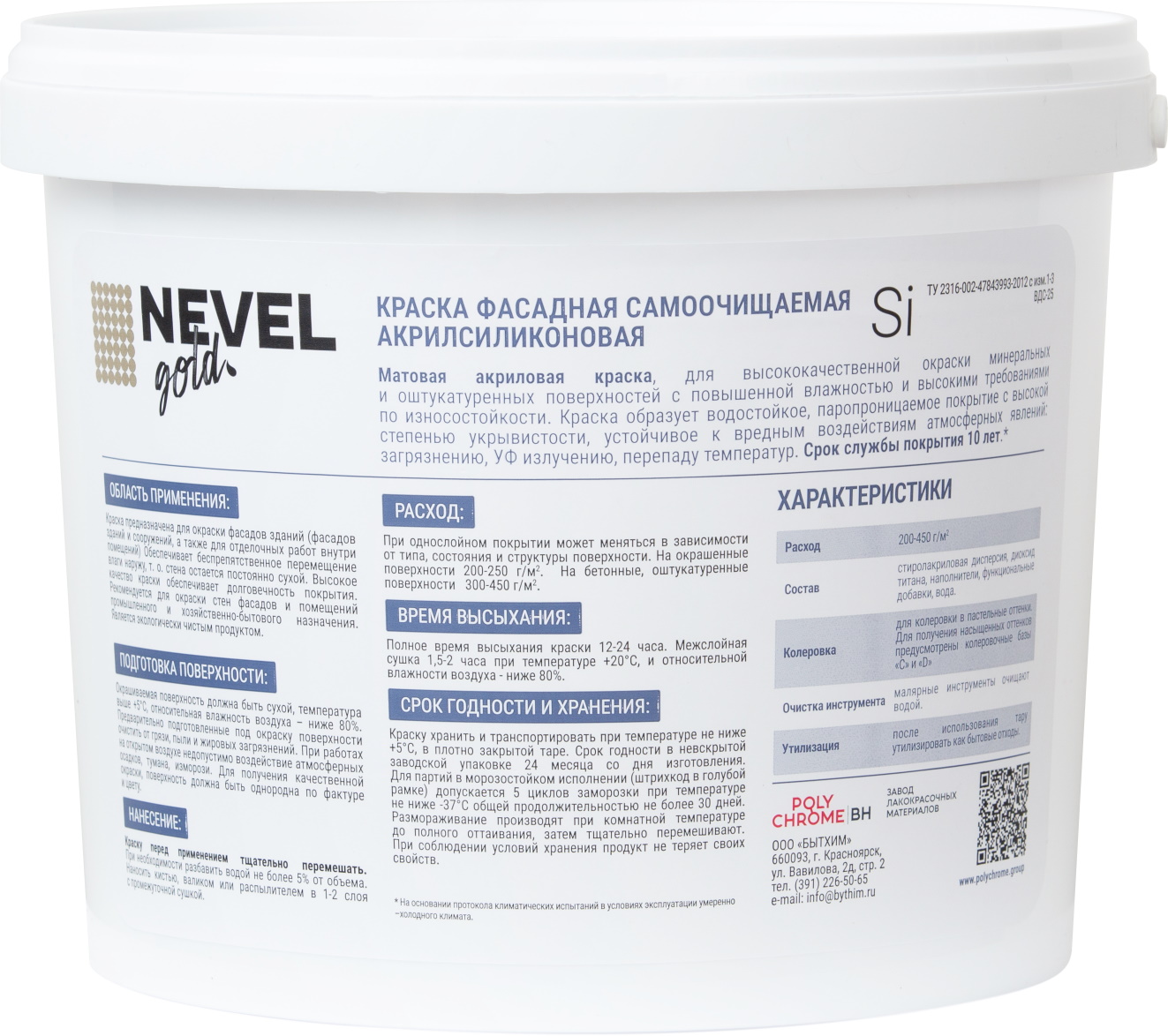 Бренд NEVEL GOLD АртикулОборудования1 W590 АртикулОборудования2 350M Страна производства Россия АртикулОборудования3 МР-1600-2 Тип краски На водной основе Предназначен для Для фасадов зданий Уход Моющаяся Межслойная сушка (ч) 1 - 2 Время полного высыхания (ч) 12 - 24 Тип помещения Фасад здания Блеск Матовый Назначение Для стен Расход г/м2 200 - 450 Тип упаковки Банка Разбавитель Вода Внешний вид Гладкая Тип продукта Краска Эффект Гладкий Срок годности (в месяцах) 24 -