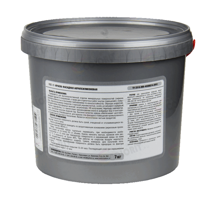 Краска предназначена для высококачественной отделки минеральных поверхностей (окраска фасадов зданий и сооружений, а также для отделочных работ внутри помещений с повышенной влажностью и высокими требованиями по износостойкости). Образует водостойкое, паропроницаемое (дышащее) покрытие с хорошей укрывистостью, особо устойчивое к вредным воздействиям атмосферных явлений: загрязнению, УФ излучению, перепаду температур.