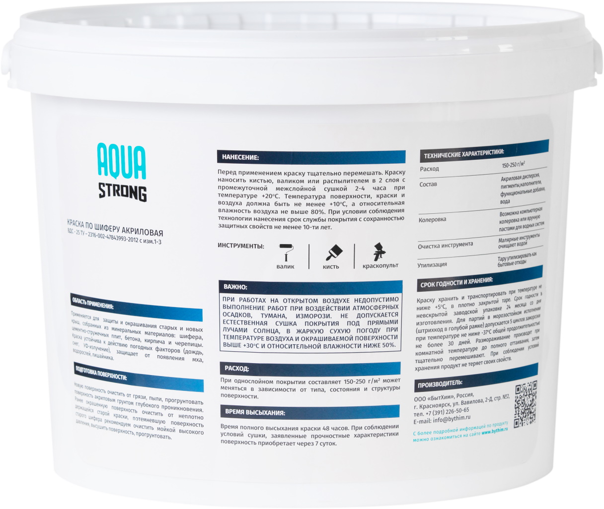 Бренд AQUASTRONG АртикулОборудования1 W590 АртикулОборудования2 350M Страна производства Россия АртикулОборудования3 МР-1600-2 Запах Без запаха Тип краски На водной основе Предназначен для Для шифера Уход Моющаяся Время полного высыхания (ч) 48 Тип помещения Фасад здания Блеск Матовый Назначение Для шифера Расход г/м2 100 - 150 Тип упаковки Банка Разбавитель Вода Внешний вид Гладкая Тип продукта Краска Эффект Гладкий Срок годности (в месяцах) 24 -