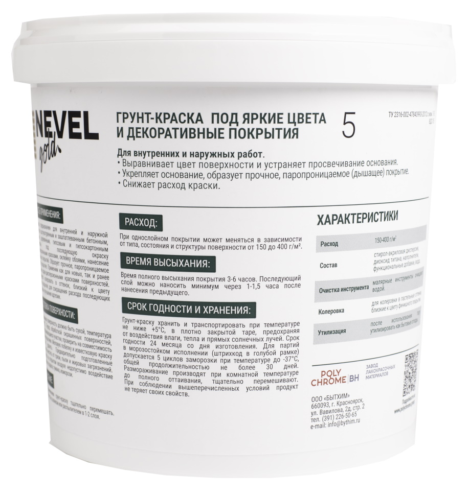 Бренд NEVEL GOLD Страна производства Россия Тип Товара Новинка Тип краски На водной основе Предназначен для Для стен и потолков Межслойная сушка (ч) 1 час Время полного высыхания (ч) 3 - 6 Тип помещения Для всех типов помещений Блеск Матовый Назначение Для стен и потолков Расход г/м2 150 - 400 Тип упаковки Ведро Внешний вид Гладкая Тип продукта Грунт Эффект Гладкий Срок годности (в месяцах) 24 -