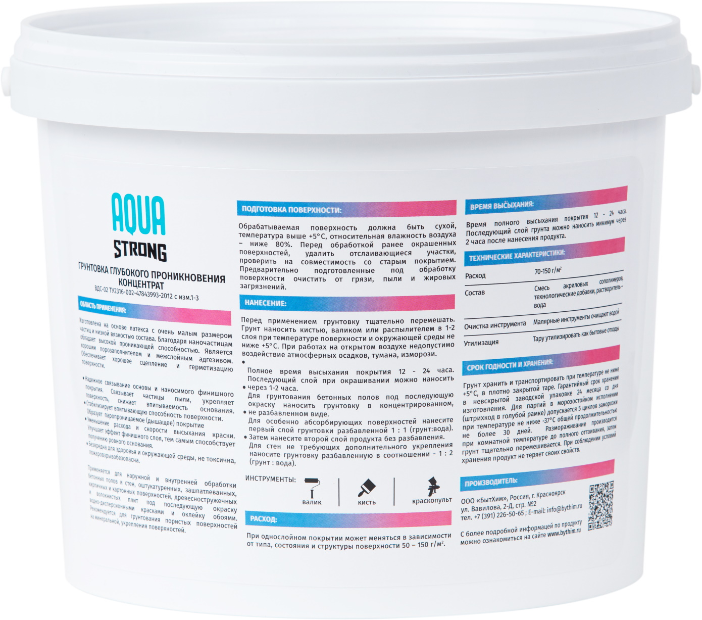 Бренд AQUASTRONG АртикулОборудования1 W590 Страна производства Россия Запах Без запаха Тип краски На водной основе Предназначен для Для фасадов зданий и помещений Межслойная сушка (ч) 1 - 2 Время полного высыхания (ч) 12 - 24 Тип помещения Для всех типов помещений Блеск Матовый Назначение Для стен и потолков Расход г/м2 50 - 150 Тип упаковки Банка Разбавитель Вода Внешний вид Гладкая Тип продукта Грунт Эффект Гладкий Срок годности (в месяцах) 24 -
