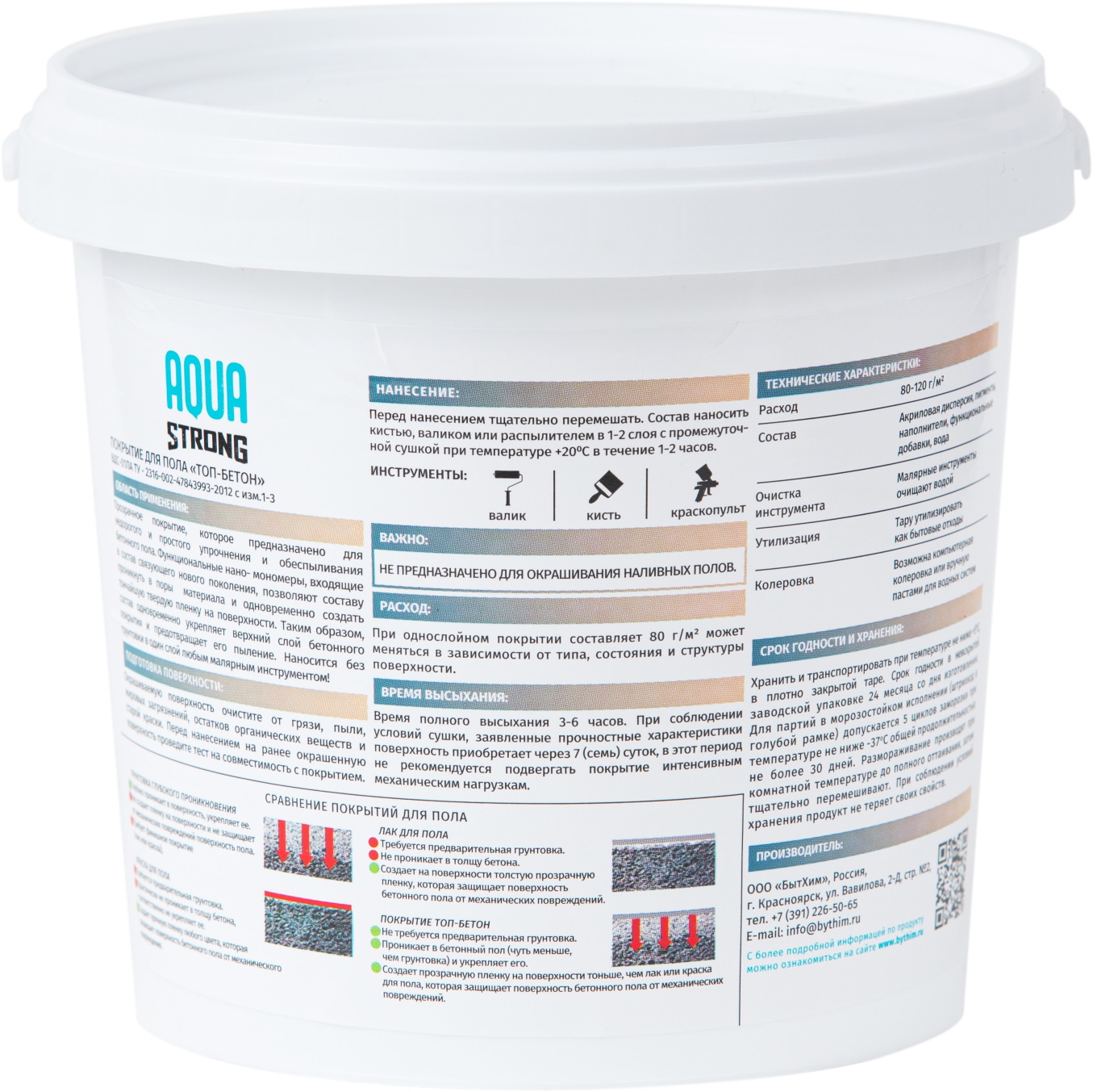 Бренд AQUASTRONG Страна производства Россия Тип краски На водной основе Предназначен для Для пола Уход Моющаяся Межслойная сушка (ч) 12 - 24 Время полного высыхания (ч) 24 Тип помещения Для всех типов помещений Блеск Матовый Назначение Для пола Расход г/м2 90 - 300 Тип упаковки Банка Внешний вид Гладкая Тип продукта Краска Эффект Гладкий -