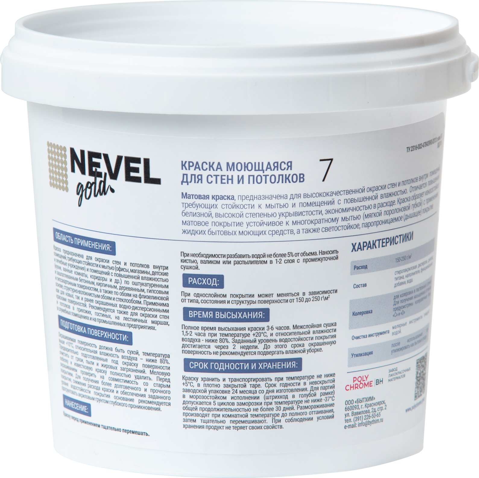 Краска NEVEL GOLD 7 моющаяся 1,2 кг