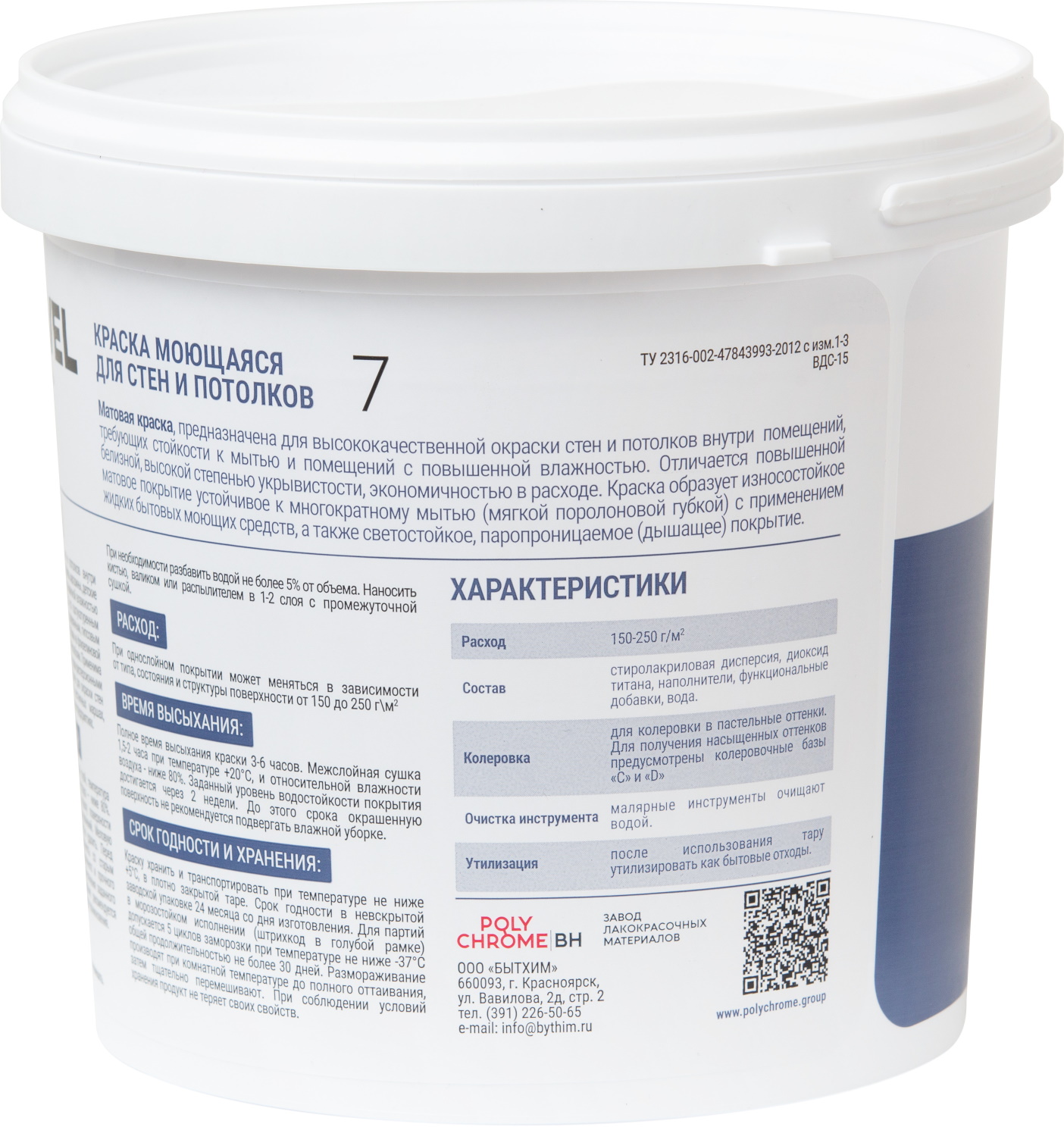 СРОК ГОДНОСТИ И ХРАНЕНИЯ: Краску хранить и транспортировать при температуре не ниже +5°С, в плотно закрытой таре. Срок годности в невскрытой заводской упаковке 24 месяца со дня изготовления. Для партий в морозостойком исполнении (штрихкод в голубой рамке) допускается 5 циклов заморозки при температуре не ниже -37°С общей продолжительностью не более 30 дней. Размораживание производят при комнатной температуре до полного оттаивания, затем тщательно перемешивают. При соблюдении условий хранения продукт не теряет своих свойств. -