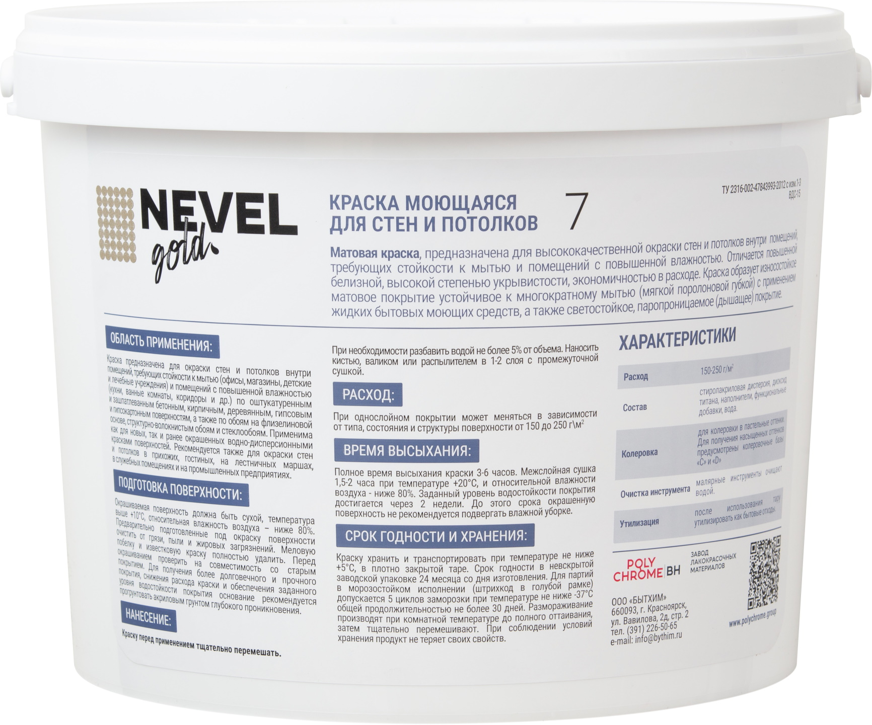 Бренд NEVEL GOLD АртикулОборудования1 W590 АртикулОборудования2 350M Страна производства Россия АртикулОборудования3 МР-1600-2 Тип Товара Обычный Тип краски На водной основе Предназначен для Для стен и потолков Уход Моющаяся Межслойная сушка (ч) 1,5 - 2 Время полного высыхания (ч) 3 - 6 Тип помещения Для всех типов помещений Блеск Матовый Назначение Для стен и потолков Расход г/м2 150 - 250 Тип упаковки Банка Разбавитель Вода Внешний вид Гладкая Тип продукта Краска Эффект Гладкий Срок годности (в месяцах) 24 -