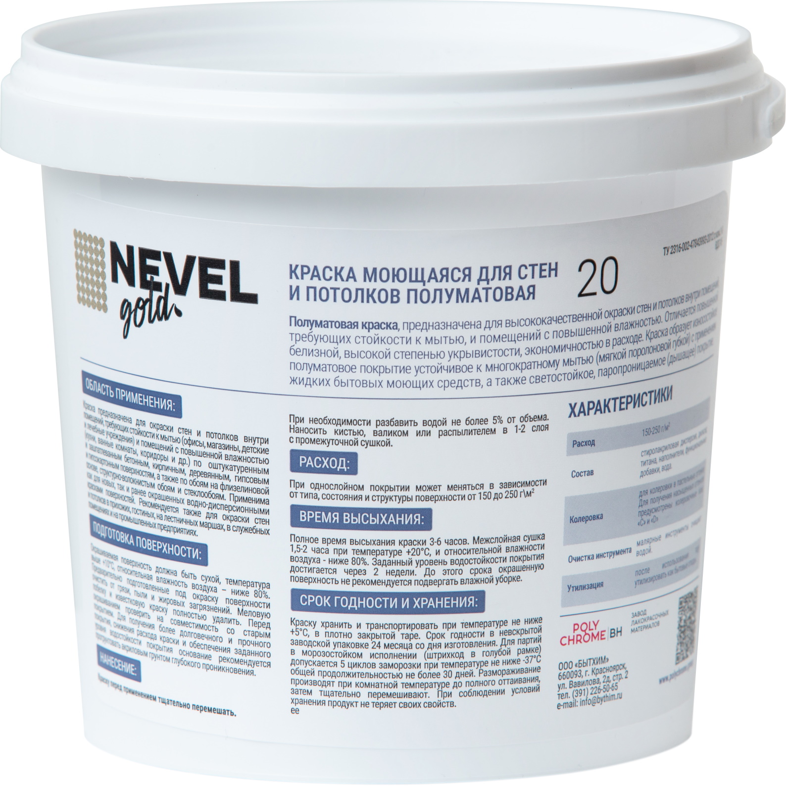 Краска NEVEL GOLD 20 моющаяся 1,2 кг