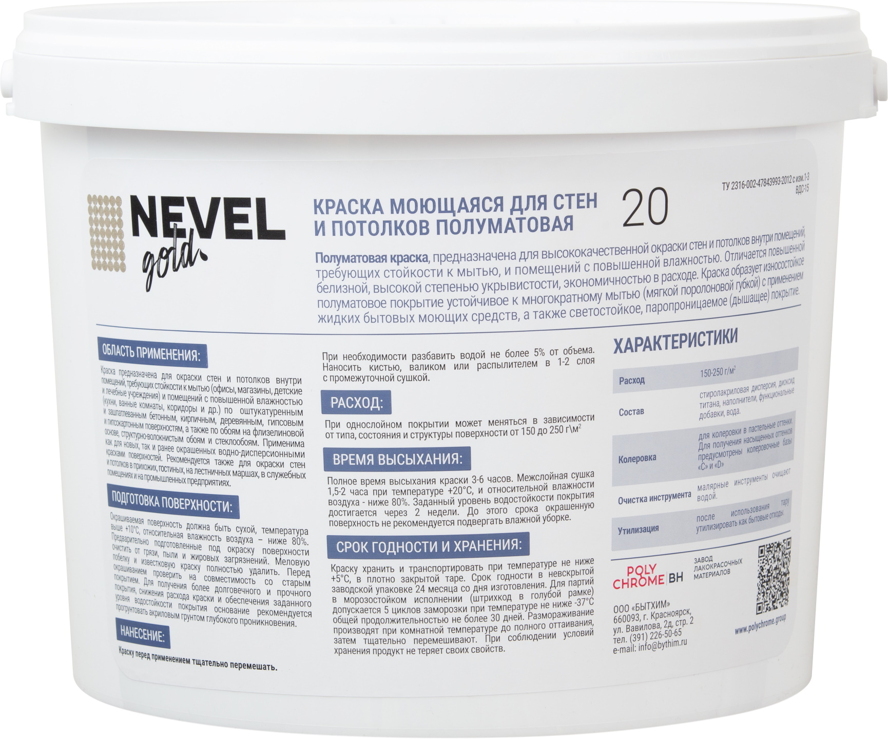 Бренд NEVEL GOLD АртикулОборудования1 W590 АртикулОборудования2 350M Страна производства Россия АртикулОборудования3 МР-1600-2 Тип Товара Обычный Тип краски На водной основе Предназначен для Для стен и потолков Уход Моющаяся Межслойная сушка (ч) 1,5 - 2 Время полного высыхания (ч) 3 - 6 Тип помещения Для всех типов помещений Блеск Матовый Назначение Для стен и потолков Расход г/м2 150 - 250 Тип упаковки Банка Разбавитель Вода Внешний вид Гладкая Тип продукта Краска Эффект Гладкий Срок годности (в месяцах) 24 -
