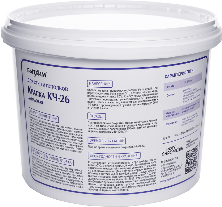 Краска для стен и потолков КЧ 26 БЫТХИМ 25 кг
