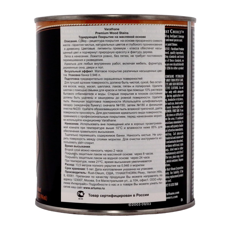 VARATHANE PREMIUM WOOD STAIN – тонирующее прозрачное масло для дерева (морилка на маслянной основе), уретан-алкидная композиция на основе прозрачного соевого масла обеспечит достижение чистых натуральных цветов и глубокого проникновения в древесину.