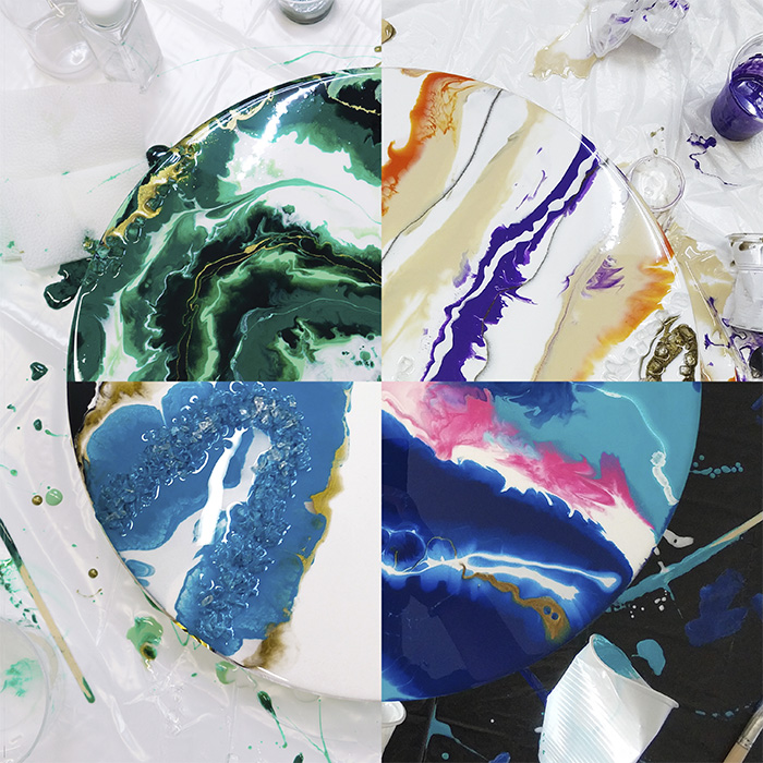 •Рисование. Нанесите смолу на планшет. Продумайте линии и сочетание цветов заранее. Если необходимо смягчить границы, используйте трубочки для этого.