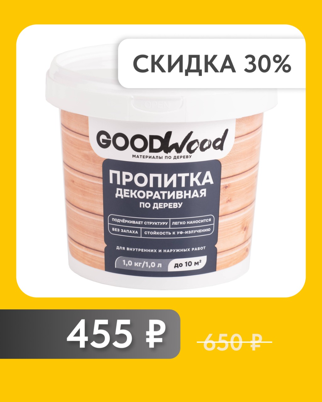 Древесина под пропитку должна быть просушенной, отшлифованной, обеспыленной, обессмоленной, чистой. При нанесении на поверхность, ранее обработанную лаком или краской, старое покрытие полностью удалить. При необходимости полной защиты древесины от насекомых, грибков и бактерий, перед нанесением пропитки рекомендуем воспользоваться Грунтовкой биозащитной невымываемой ТМ «GoodWood».