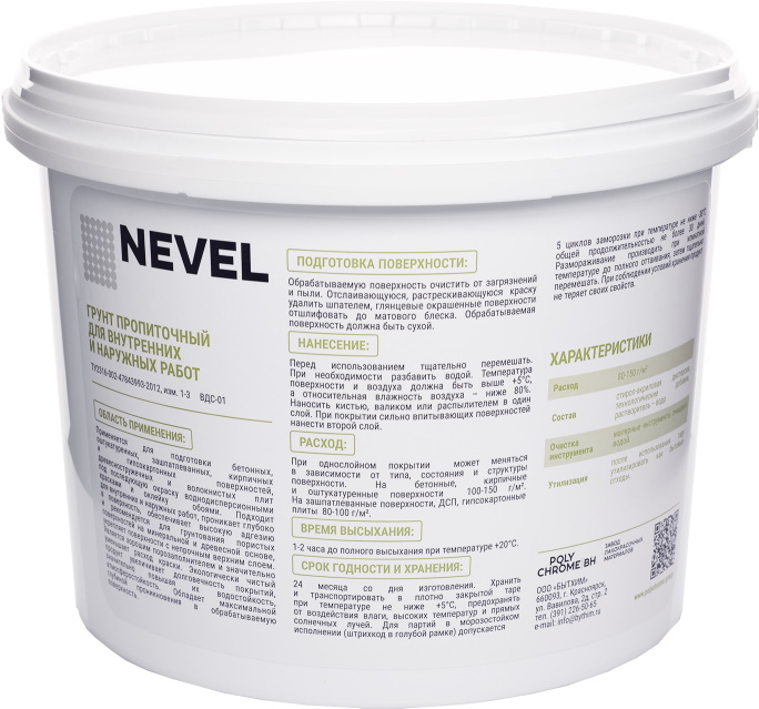 Бренд NEVEL Страна производства Россия Запах Без запаха Тип краски На водной основе Предназначен для Для стен и потолков Межслойная сушка (ч) 1 - 2 Время полного высыхания (ч) 3 - 12 Тип помещения Для всех типов помещений Блеск Матовый Назначение Для стен и потолков Расход г/м2 70 - 150 Тип упаковки Канистра Внешний вид Гладкая Тип продукта Грунт Эффект Гладкий Срок годности (в месяцах) 24 -
