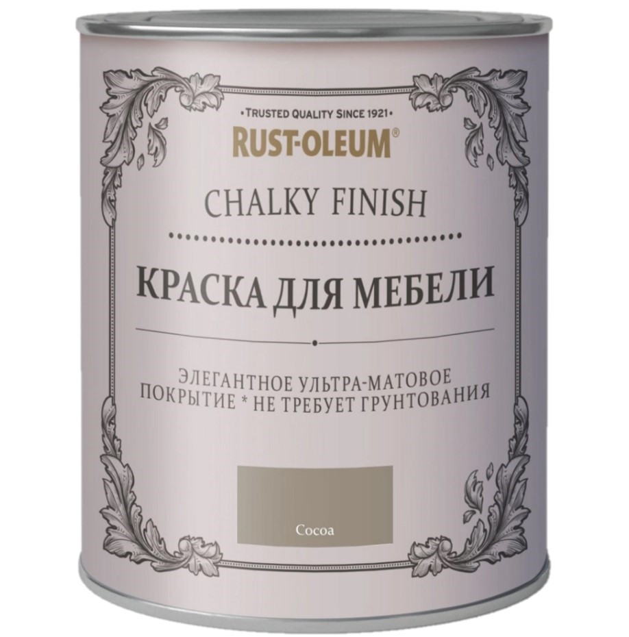 Бренд RUST-OLEUM Цвет Какао Страна производства США Тип краски На акриловой основе Предназначен для Мебель, двери, пол, окна Уход С помощью влажной губки Межслойная сушка (ч) 3 - 4 Время полного высыхания (ч) 12 - 24 Тип помещения Для всех типов помещений Блеск Матовый Назначение Мебель, двери, окна Тип упаковки Банка Внешний вид Гладкая Тип продукта Краска Эффект Шелковисто-матовый Срок годности (в месяцах) 60 -