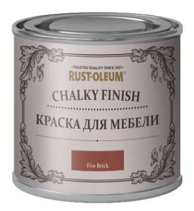 Бренд RUST-OLEUM Цвет Обожженый кирпич Страна производства США Тип Товара Обычный Тип краски На акриловой основе Предназначен для Мебель, двери, пол, окна Уход С помощью влажной губки Межслойная сушка (ч) 3 - 4 Время полного высыхания (ч) 12 - 24 Тип помещения Для всех типов помещений Блеск Матовый Назначение Мебель, двери, окна Тип упаковки Банка Внешний вид Гладкая Тип продукта Краска Эффект Шелковисто-матовый Срок годности (в месяцах) 60 -