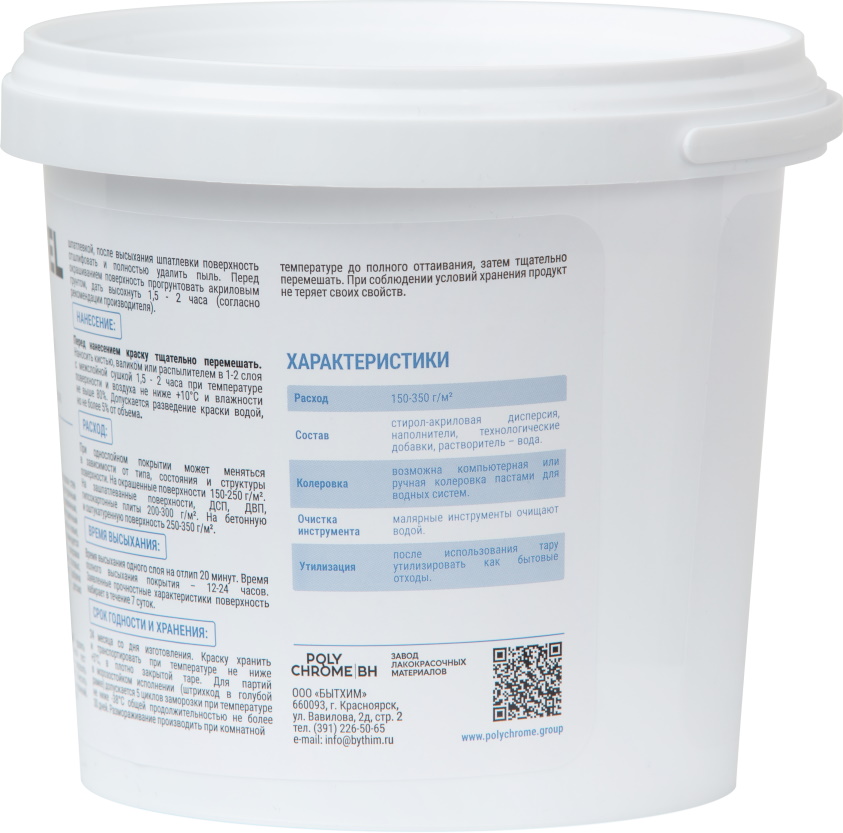Краска акриловая интерьерная предназначена для качественной окраски стен и потолков в сухих помещениях по оштукатуренным и зашпатлёванным бетонным, кирпичным, деревянным, гипсовым поверхностям, древесностружечным и волокнистым плитам, а также для окраски всех типов обоев под окраску. Можно наносить как на новые, так и на ранее окрашенные поверхности, образует износостойкое покрытие, устойчивое к истиранию. Рекомендуется для окраски стен, с возможностью колеровки в различные цвета и оттенки, в гостиных, столовых, спальнях, офисах и других помещениях. -