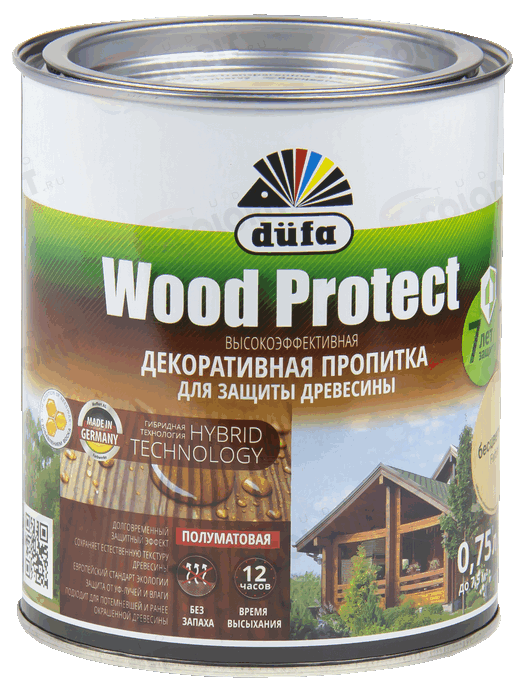 Бренд DUFA Страна производства Германия Запах Без запаха Тип краски Гибридная Предназначен для Для внутренних и наружных работ Уход Моющаяся Межслойная сушка (ч) 1 час Время полного высыхания (ч) 6 Тип помещения Для всех типов помещений Блеск Полуматовый Назначение По дереву Расход г/м2 40 - 100 Тип упаковки Банка Разбавитель Вода Внешний вид Гладкая Тип продукта Пропитка Эффект Гладкий Срок годности (в месяцах) 60 -